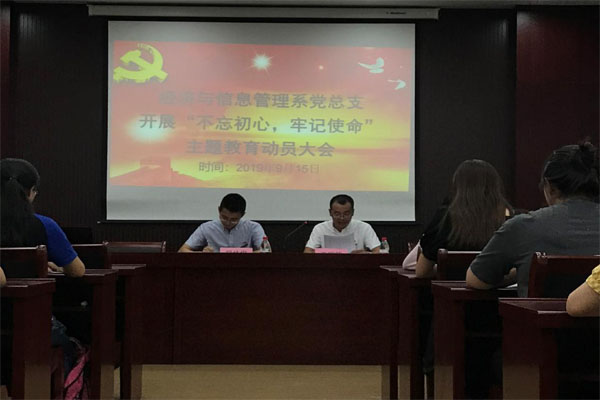为认真学习贯彻学院党委“不忘初心、牢记使命”主题教育工作会议精神,2019年9月15日18:30,经济与信息管理系党总支于行政楼29幢326党员之家组织开展“不忘初心、牢记使命”主题教育动员大会。学院党委委员郑伟俊老师做动员讲话,我系党总支副书记王明照老师主持大会,我系全体教工党员和学生党员参加本次会议。