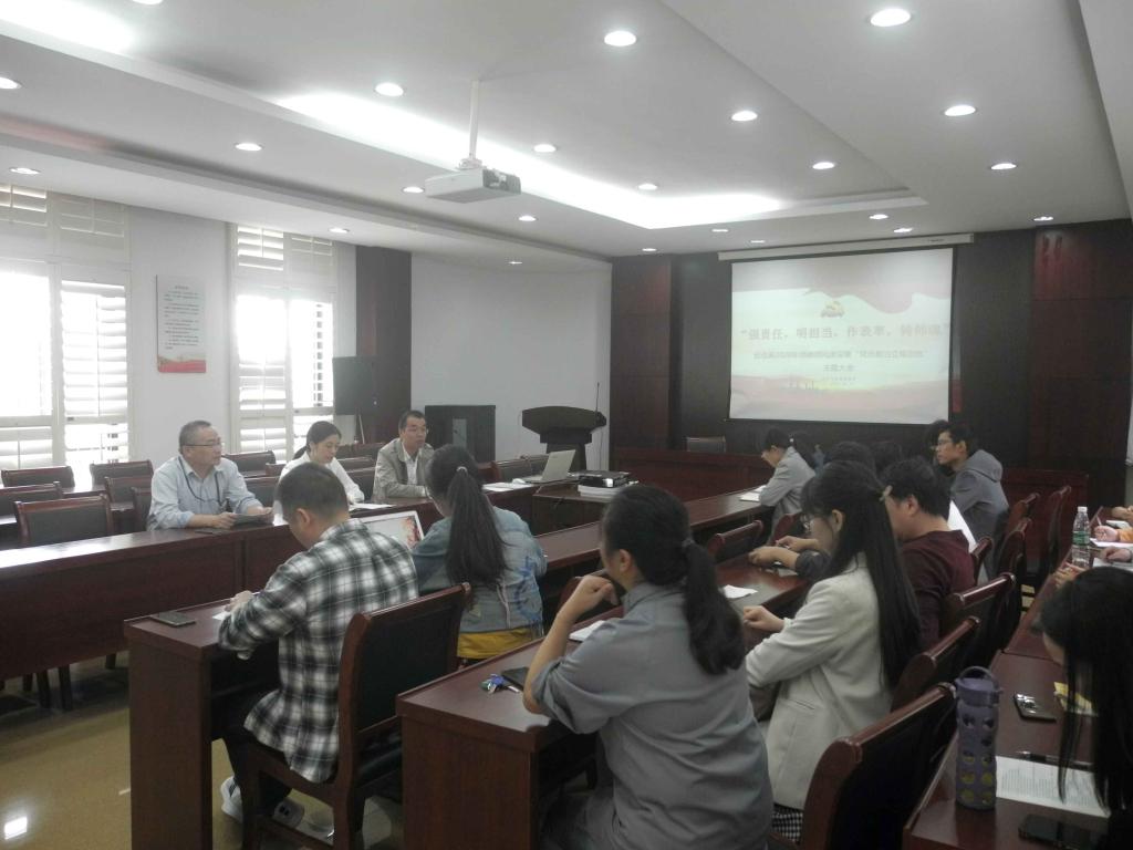 10月15日中午,我系在29-326党员之家召开“强责任、明担当、作表率、铸师魂”经信系2020年师德师风建设暨“党员整治立规创优”主题大会。会议由王明照主持,党委委员、统战部长徐玉芳及我系全体教师参加了本次大会。