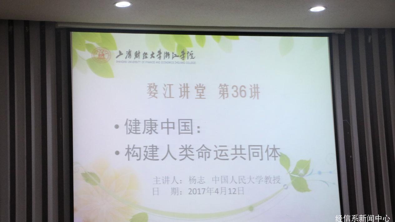 4月12日晚,受我院经信系邀请,中国人民大学经济学教授、博士生导师杨志老师应邀做客学院婺江论坛第三十六讲,为全院师生做主题为“健康中国——构建人类命运共同体”的讲座,讲座由学院教学督导马艳教授主持,三百余名师生参加了本场讲座。