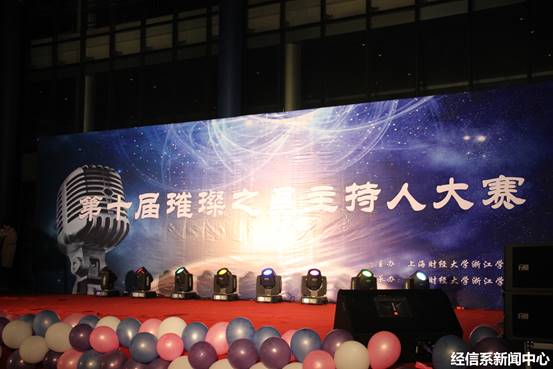 11月10日晚,我院第十届璀璨之星主持人大赛决赛在体育馆东侧广场举行。由金华广播电视总台箭客老师,浙江日报金华分社沈丽、张姮老师,院学生处吕紫薇老师,童佳瑜老师,金融系尤磊老师,浙江师范大学第七届主持人大赛冠军沈哲和金华职业技术学院第十六届主持人大赛冠军张艺腾、学院第七届璀璨之星主持人大赛冠军刘洋担任评委,由上届主持人大赛冠军肖美琪同学和彭江明同学主持。