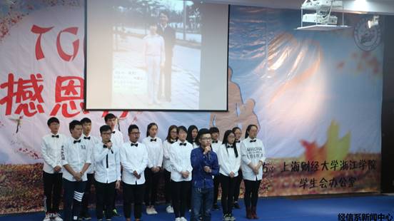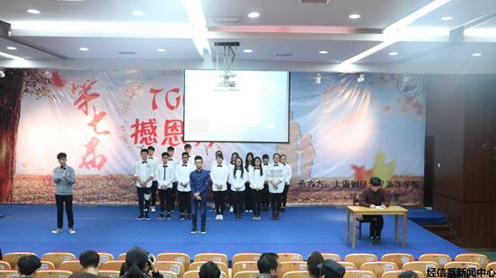 12月2日晚6时30分,由上海财经大学浙江学院学生会办公室承办的“第七届撼恩秀”于图书馆报告厅举行。本次大赛由学院保卫处副处长缪明礼老师、工商管理系辅导员徐燕老师、外语系辅导员胡伟老师、金融系辅导员尤磊老师、第五届院学生会办公室主任李晶同学等担任评审。