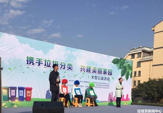 2016年12月12日,金华市文明办、金华市广播电视总台、金华市生活垃圾分类管理办公室联合主办的“携手垃圾分类,共建美丽家园”活动在王坦社区举行。上财浙院经济与信息管理系排演的《垃圾分类我先行》小品也搬上了该舞台。