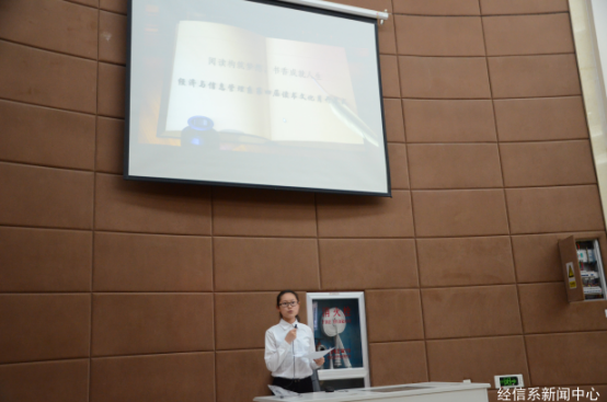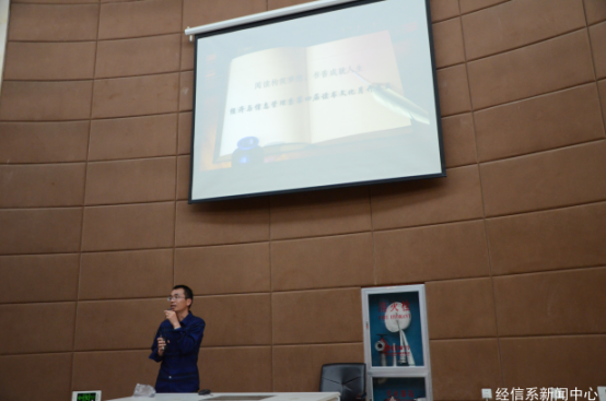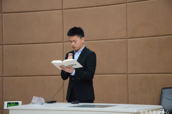 随后,主持人郑嘉伦同学介绍了读书月期间将开展一系列读书讲座、书籍推荐活动、征文比赛、DIY书签制作、“一站到底”知识竞赛等活动,在我系形成人人爱书、人人读书的良好文化氛围,来共同促进我系优良学风的形成。