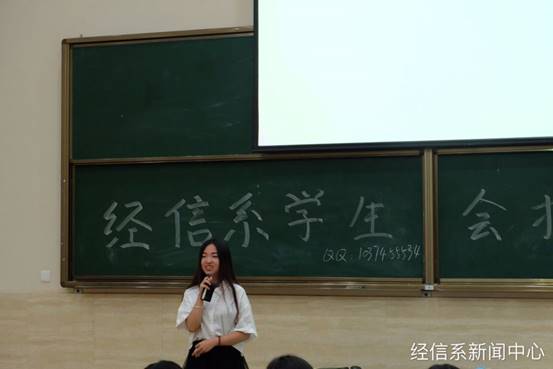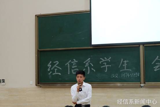 25日晚七点在6-102阶梯教室召开了经济与信息管理系学生会宣讲会。由学生会主席团成员金雯同学主持,出席本次宣讲会的有经信系学生会主席团、各部门部长,副部及16级全体新生。