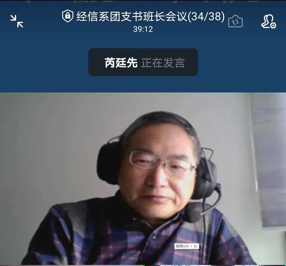 芮老师在对各班团支书班长提出的部分问题作出了解释后,向全体同学提出了4点要求:1、收心学习。现在已经开学,学生要有一个开学的状态;2、服从大局。现在是疫情防控,大家要听从当地的安排,在家里进行相关的学习。3、逐渐提高。网上开课对所有人来说都是第一次,其中有很多不完善的地方,我们可以通过更多的交流来提高我们学习的方法,找到适合我们学习的方法。4、积极投入到各种活动中,参加如电子商务大赛、互联网创新创业大赛等活动。
