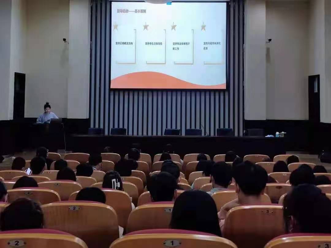 最后,王筱蓉语细化分享了十一项改革措施:加强思想政治教育工作,明确组织职能定位,改革运行机制,优化精简工作人员,明确人员遴选条件,严格遴选程序,规范召开代表大会,坚持从严治会,建立述职评议制度,落实党委的全面领导和加强团委的具体指导。在以后的学生工作中,她希望同学们能够条条落实,件件落地,事事见效。