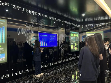 游学伊始,同学们参观了义乌陆港电商展示馆。通过视频宣传片、沙盘、服务讲解等同学们了解了义乌陆港电商小镇的发展史、国际陆港集团、义乌电商发展历程、产业生态布局及发展优势等方面内容。