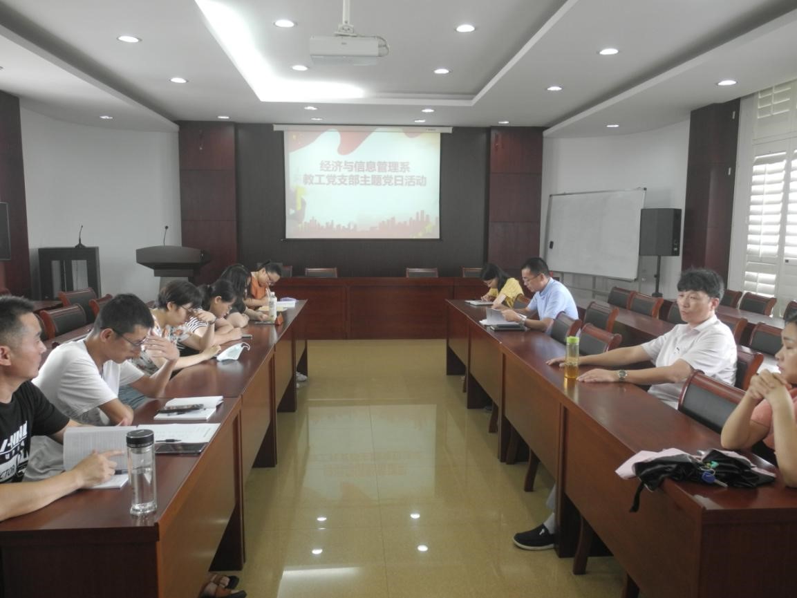 2020年6月30日下午,我系教工党支部在29-326党员之家召开了主题党日学习会由我系党总支副书记王明照主持。王书记分别从“加强党的政治建设”、“坚定政治信仰”、“坚持党的政治领导”、“提高政治能力”、“净化政治生态”、“强化组织实施”等六个方面向大家阐述了《中共中央关于加强党的政治建设的意见》的文件精神,同时希望与会党员同志加强自主学习,积极吸收最新的理论成果,提出以“学习强国APP”为依托,主动关心国家大事,提高认识水平,不做违背初心和使命的错事,以最近高校教工出现的不当言行为戒,积极发挥党员的先锋模范带头作用。