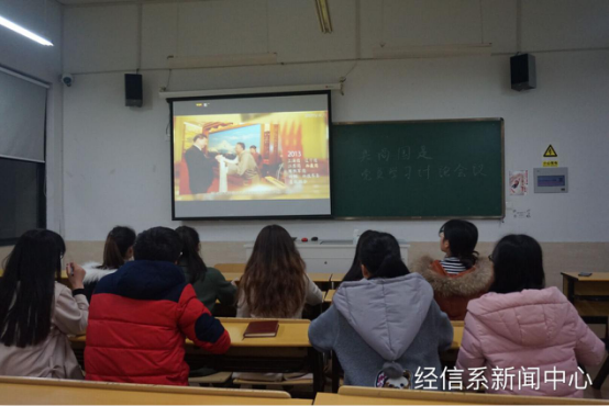 3月7日晚,经信系学生党支部于教学楼6-112教室组织全体在校学生党员观看《共商国是》微视频的党员学习讨论会议。张冰玉、沈昕、陈晓慧、蒋庆、吴小华、赵颖姿、董瑞兰、李宇、蒋颖、陈李宁十位预备党员参与了此次会议。会议由蒋颖同学主持。