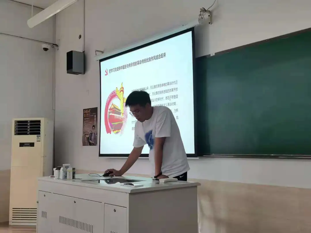 2021年05月27日13:00,经济与信息管理系19级电子商务专业的全体学生于7—112开展了“让有信仰的人讲信仰——党员进课堂之我的入党动机”线下宣讲活动。主讲人为中共预备党员赵豪泽同志。本次宣讲会的主题为——学四史,守初心。