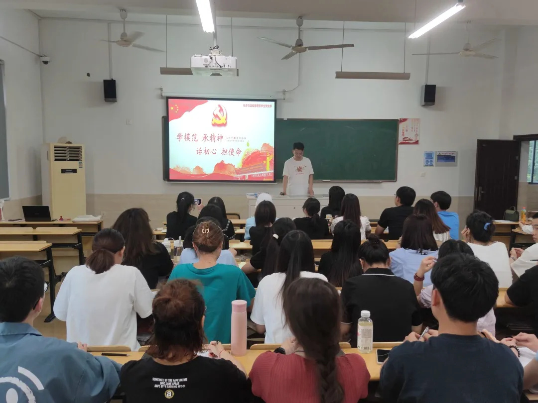 2021年5月27日18:00经济与信息管理系学生党支部在7-215开展五月主题党日活动,主题为“学模范 承精神 话初心 担使命”。本次活动由学生党支部书记郑路倩老师主持,全体学生党员参与。