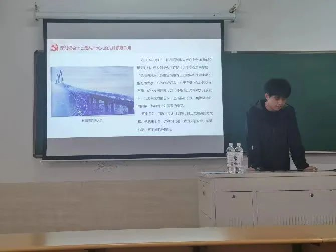 2023年5月24日12:45,经济与信息管理系学生党支部党员、入党积极分子开展了2022-2023学年第11、12节微党课,主讲人是中共预备党员周圣浩同志。带领大家学习红色书籍《干在实处 勇立潮头---习近平浙江足迹》第五章节。