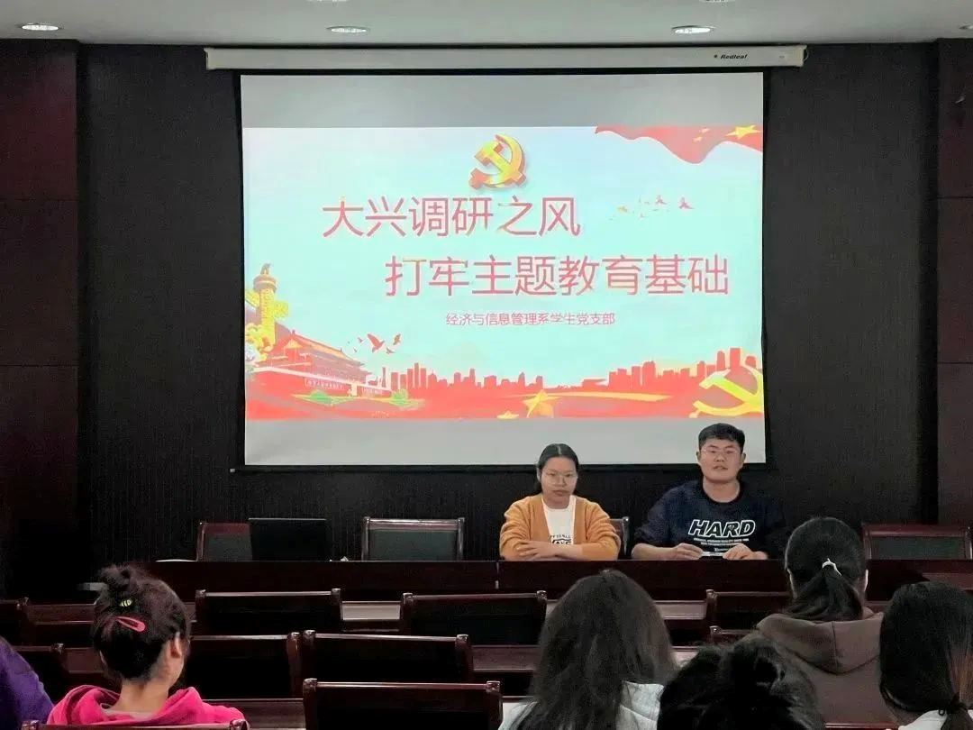 2023年4月26日13:30经济与信息管理系学生党支部在29-326开展四月份党日活动,主题为“大兴调研之风 打牢主题教育基础”。本次活动由上海财经大学浙江学院经济与信息管理系学生党支部书记贾丹老师、辅导员王志豪老师主持,全体学生党员参与。