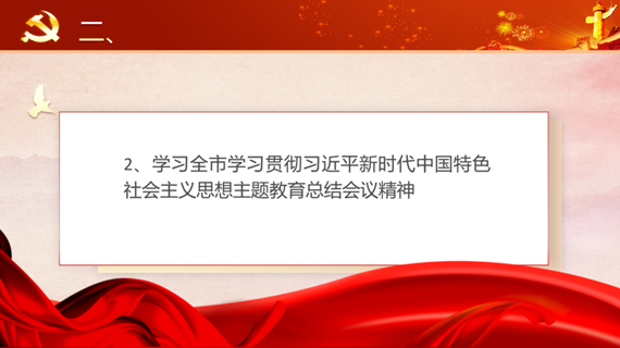 五、组织学习全市学习贯彻习近平新时代中国特色社会主义思想主题教育总结会议精神