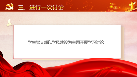 戴昕煜同志表示学风是读书之风,是治学之风,更是做人之风。优良学风是激励学生奋发向上,努力成才的无形而强大的精神力量,我们要在思想上提高对学习的认识,要明确自己的首要任务是刻苦学习,掌握过硬的专业知识,不断拓宽自己的知识面,全面发展。我们要有明确的学习目的、端正的学习态度,还要在课外主动学习,勤于钻研,善于思考,我们要做优良学风的倡导者,认真遵守课堂教学纪律,加强自我行为约束,时刻规范自我言行,严守校规校纪,起到先锋模范作用。