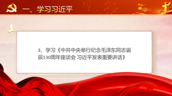 三、组织学习《中共中央举行纪念毛泽东同志诞辰130周年座谈会 习近平发表重要讲话》