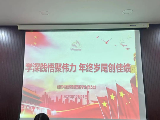 年12月21日19:00经济与信息管理系学生党支部在29-326开展十二月份党日活动,主题为“学深践悟聚伟力 年终岁尾创佳绩”。本次活动由上海财经大学浙江学院经济与信息管理系学生党支部书记方姿懿老师主持,全体学生党员参与。