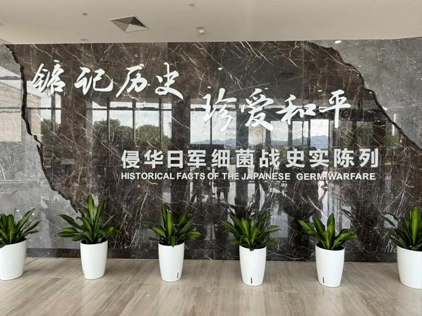 同学们清晨乘车前往义乌市侵华日军细菌战陈列馆,抵达后,在工作人员引领下步入馆内,一股庄严肃穆的氛围即刻笼罩。一进门,刻有“铭记历史,珍爱和平”的巨大黑色石碑震撼人心,引领同学们穿越至那段黑暗历史。