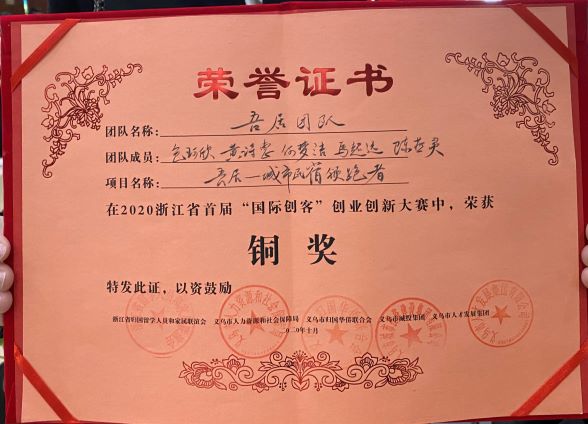 10月23日下午,2020年浙江省首届“国际创客”创业创新大赛在义乌农商银行总行落下帷幕,我系共有两支队伍入围决赛,最终由高田曜和包珂欣分别作为项目负责人的“BLACK CLOUD工作室——专注于二次元IP改造与运营”、“吾居——城市民宿领跑者”项目分别获得金奖和铜奖,并分获奖金50000元和5000元。