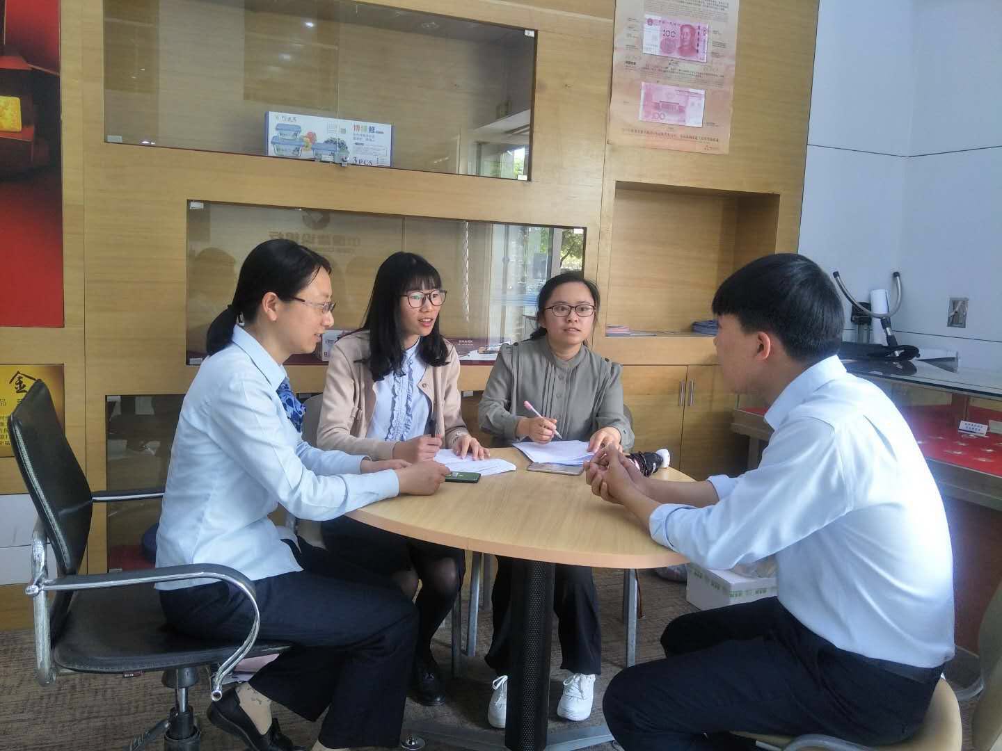 下午,贾婉文、曹倩雯二位老师来到建设银行义乌分行,对万志阳同学的实习情况进行了解,两位老师与万志阳同学的实习主管领导进行了交谈,了解了万志阳同学的实习情况,并询问了实习单位对实习生以及学院的建议。
