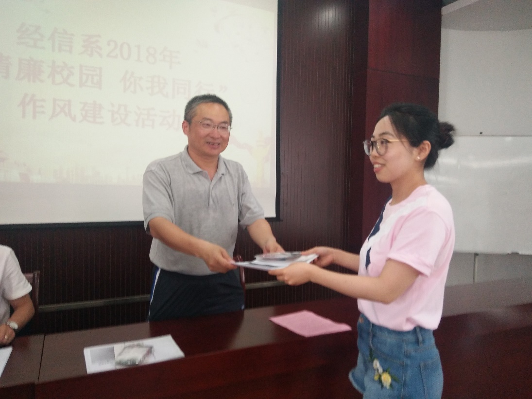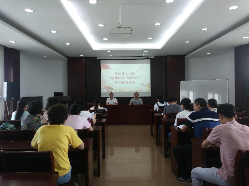 活动首先由王明照向全系教工宣传了学院纪委《关于开展2018年“清廉校园你我同行”作风建设活动月的实施方案》的通知,要求全系老师以身作则,自觉参与,以高尚的师德情操感染学生。