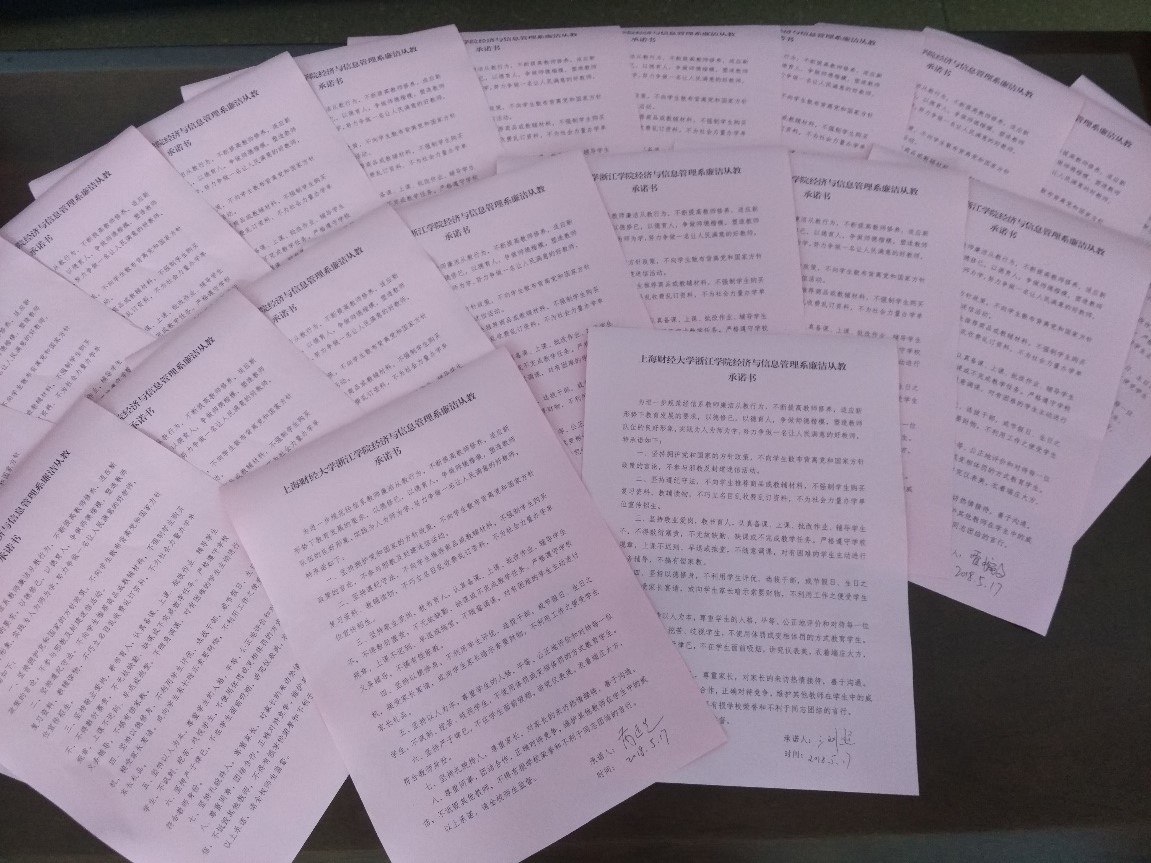 接着,全系教工积极响应学院纪委号召,自觉与系里签订《上海财经大学浙江学院经济与信息管理廉洁从教承诺书》。