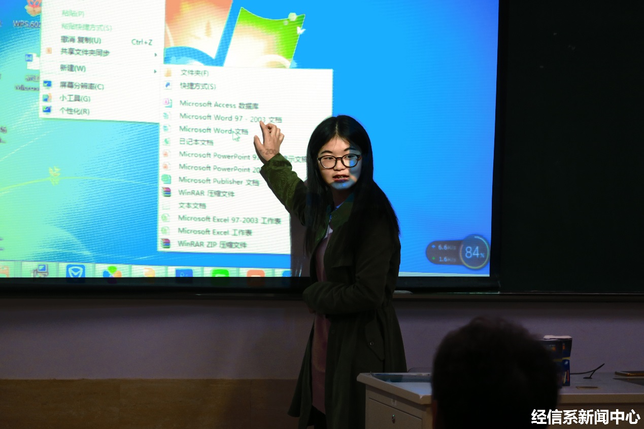 11月12日晚,应金东区多湖街道上古井社区要求,上海财经大学浙江学院经济与信息管理系学生干部邹滨遥,在学院教学楼为上古井待业在家的社区居民进行网络基本技能培训。