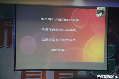 同学们以自己的方式书写青春,用自己的方式描绘大学的风采。此次晚会不仅是视听盛宴,更是青春梦想的起航。今夜,青春将在这里起航,今夜,梦想将在这里飞翔。我们相信在经信系全体老师和同学的共同努力下,将会铸造更美好的明天!