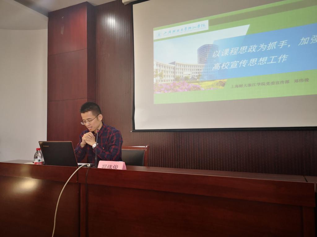 郑老师从三个方面展开授课:一是推进课程思政建设的必要性。从认识层面为大家导航方向;二是树立以德为先的育人理念。从思路层面进行细化阐释;三是突出思想宣传的育人功能。从具体举措层面徐徐展开、有的放矢,为大家进一步消化吸收主题教育的具体内涵提供了可行的方法论。