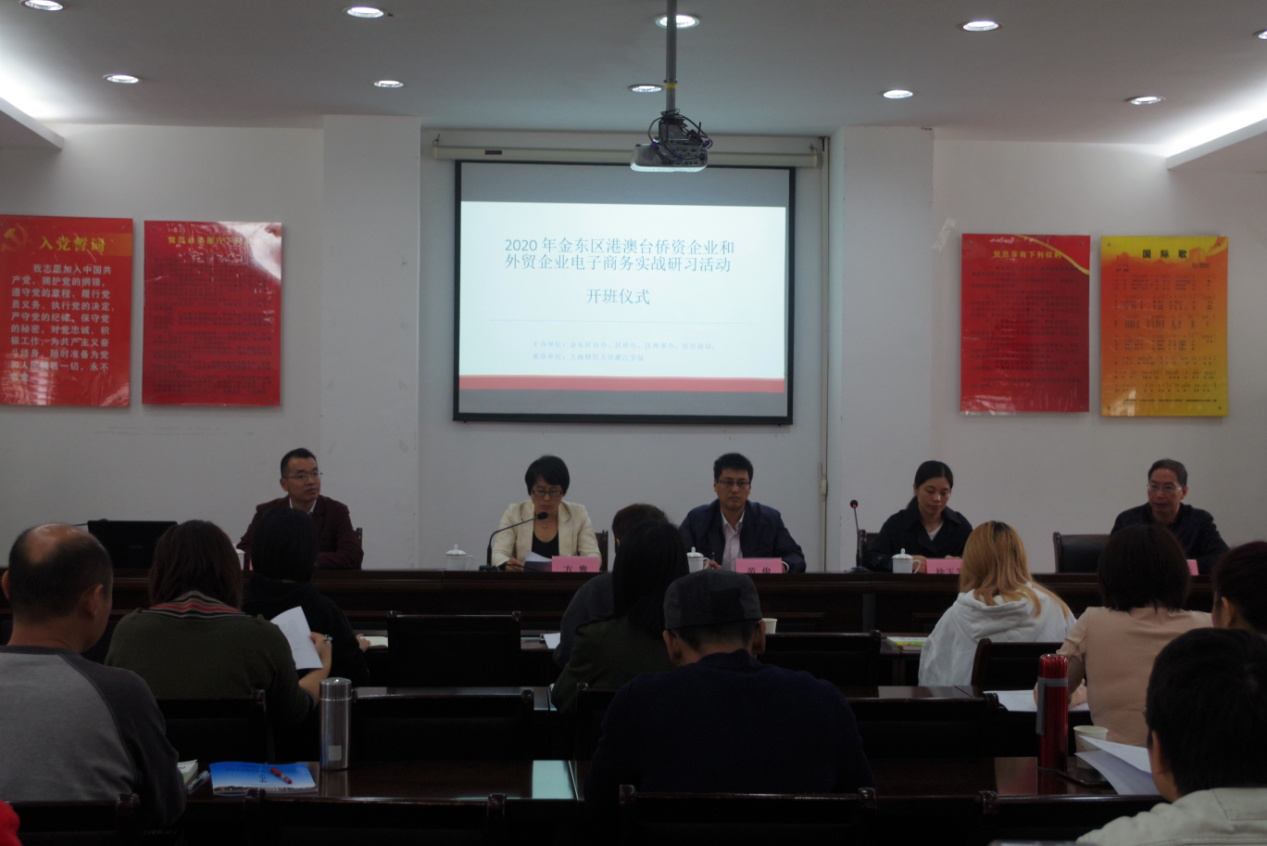 11月2日,金东区2020年港澳台侨资企业和外资、外贸企业电子商务实战研习培训开班仪式在学院举行,金东区委办公室副主任范俊,金东区委统战部副部长、区侨办主任、区侨联专职副主席方隽,学院党委委员、统战部长徐玉芳,学院继续教育学院院长张慧忠,学院经济与信息管理系党总支副书记王明照出席开班仪式,金东区港澳台侨资企业和外资、外贸企业参加开班仪式。开班仪式由金东区委统战部副部长方隽主持。