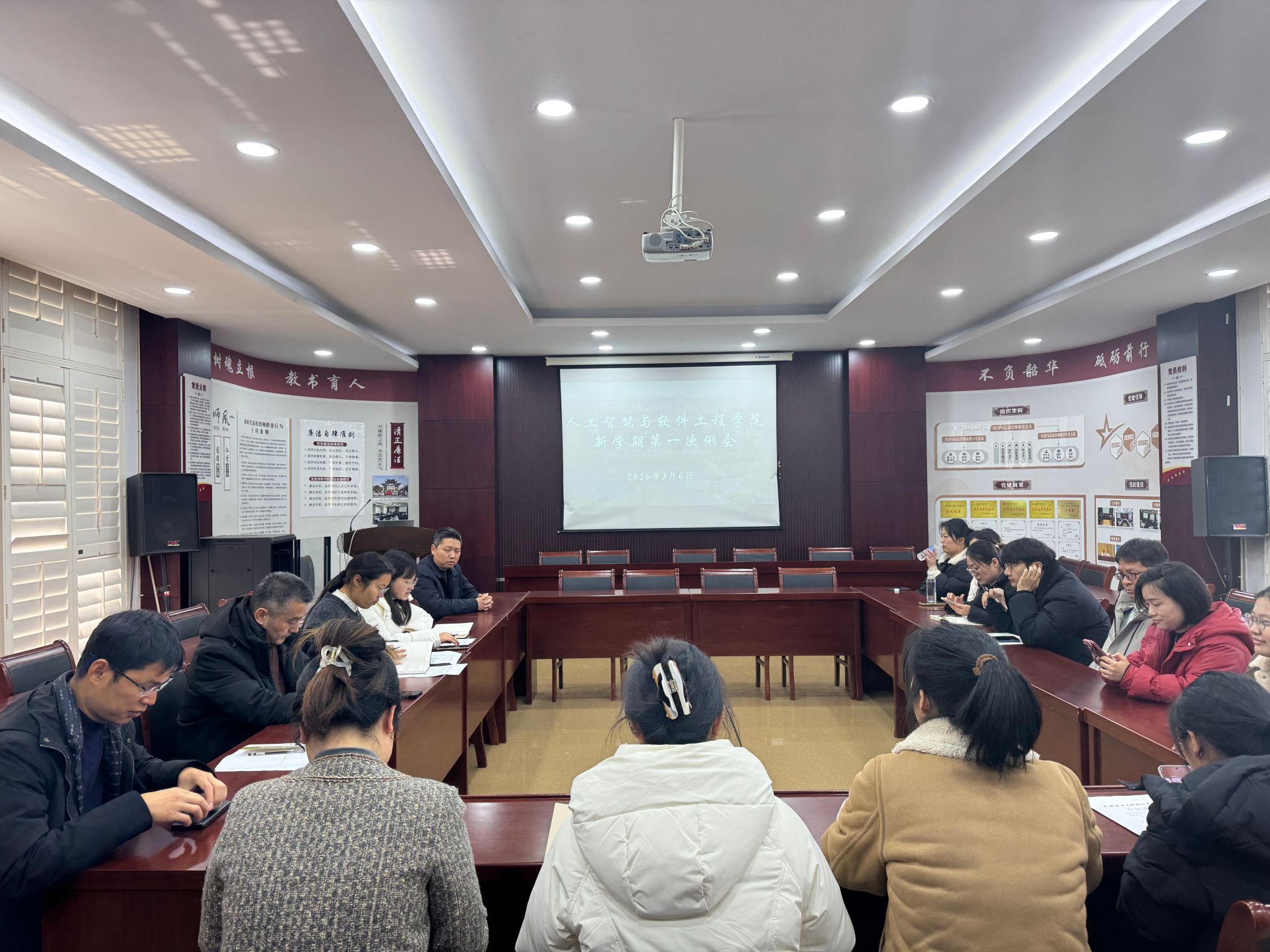 新春伊始,万象更新。为全面落实学校二级管理部署,平稳有序推进新学期各项工作,3月6日,人工智能与软件工程学院召开2026年开年第一次全体教职工会议。会议由学院党委委员、副院长李丹主持,全体教职工参会。