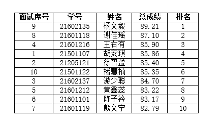 根据学院教务处《关于做好2022年选拔优秀学生进入校本部交流学习的通知》的要求,以及《经济与信息管理系2022年“赴上海财经大学交流学习”项目选拔工作的通知》,我系对参加2022年“赴上海财经大学交流学习”项目符合条件的10名同学的成绩进行了评审。现将评审结果公示如下:
