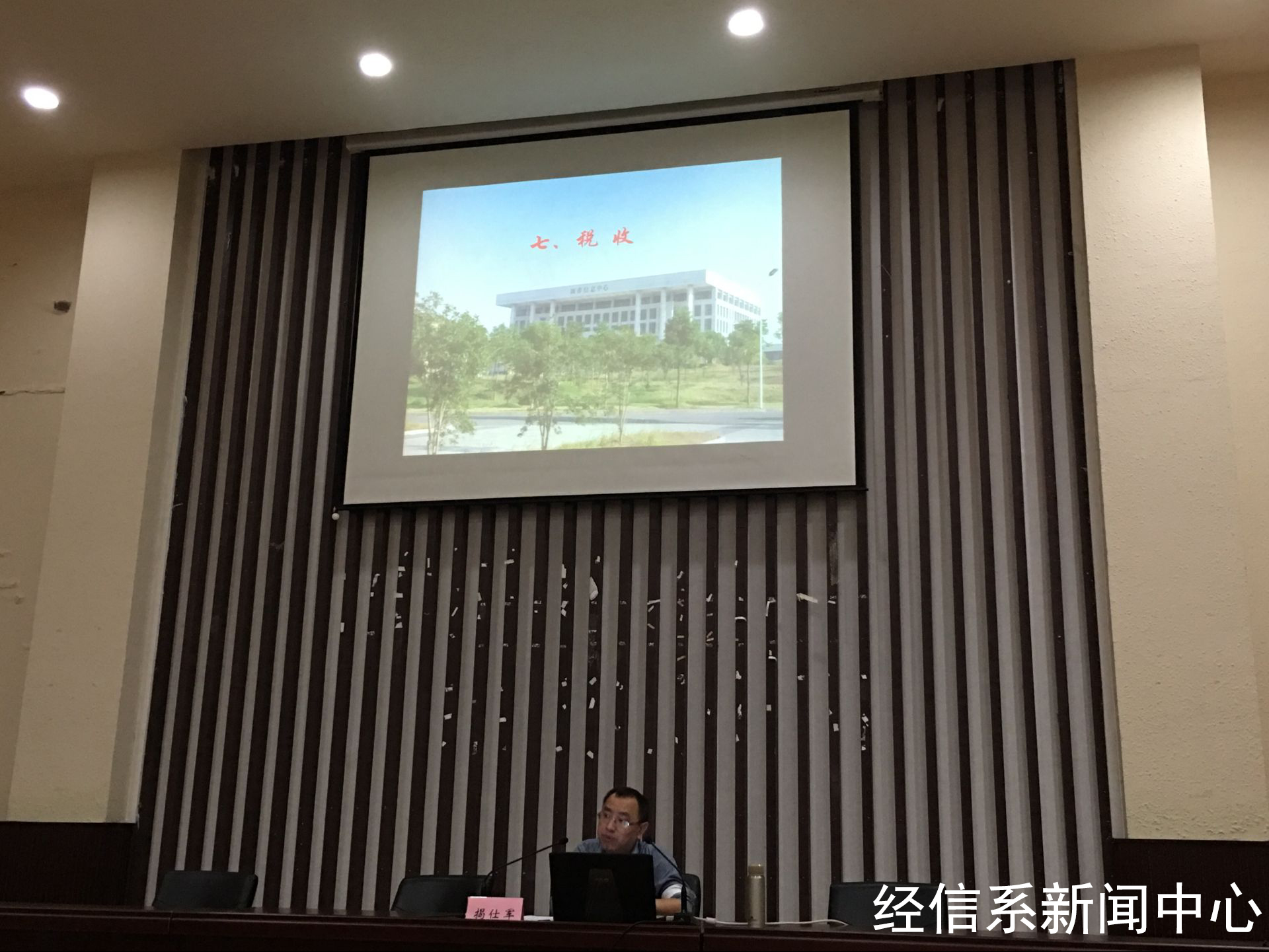 10月13日,经济与信息管理系在行政楼28-120举办由经济与信息管理系综合办公室主任揭仕军老师主讲的经信讲堂第二讲,本次讲座主题为“生活中的经济学”,由王明照老师主持。经信系两百多名同学参加了此次讲座。 讲座的开始前,王明照老师向大家介绍了我系“经信讲堂”的原因,他取自 “经世济国,信义为先”的意思,作为财经院校,要求大家做一个有信义的人,对国家有用的人。随后王老师隆重地向各位学生介绍了揭仕军老师。