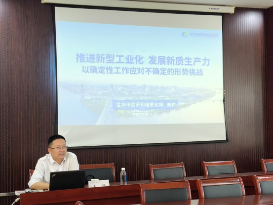 讲座伊始,姜委员先介绍了金华市经信系统基本情况,其次从“2+4+X”产业布局即纺织服装和现代五金两大传统优势产业,芯光电、新能源汽车及零部件、高端装备制造和生物医药四大现代新兴产业,以新材料为代表的X个未来产业等方面介绍了金华市工业基本状况,强调十条重点产业链培育,加快建设一批具有国际竞争力的先进制造业集群。