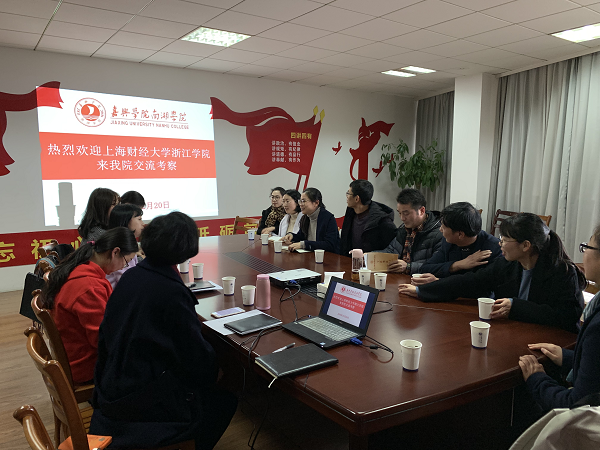 2018年12月20日,为实现更好的教学宗旨,我校全体教研室人员赴嘉兴南湖学院参观考察。我校与嘉兴学院南湖学院数理与信息工程系领导及教师进行了座谈,交流了学院和我系的基本情况,了解了嘉兴学院南湖学院信息管理和信息系统专业的人才培养方案、实践教学、校企合作和实验室建设情况。座谈会中还探讨了学生创新创业和学科竞赛的推进和实施。