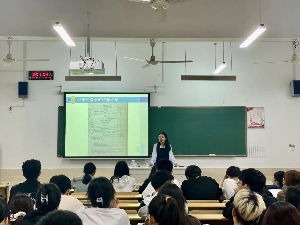为帮助我系大一新生充分了解毕业要求,引导他们合理利用大学时光,确定学习目标,制定学习计划,经济与信息管理系于2023年10月16日晚18:00邀请了经信系学工办主任贾丹老师为23级学生开展学业规划讲座。