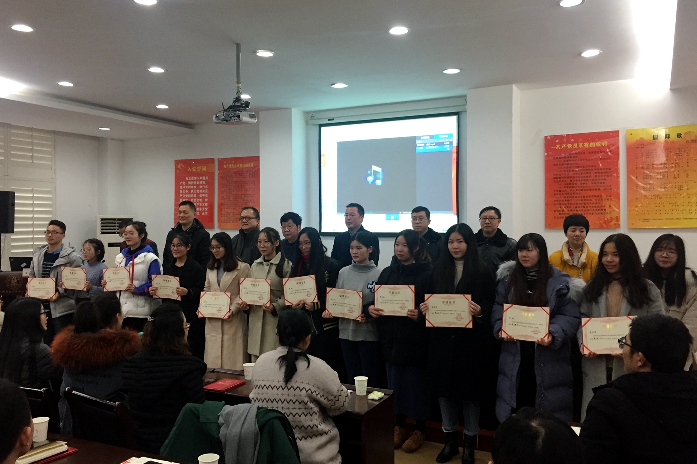 在激昂的颁奖乐中,学院领导为获奖的个人、组织颁发证书、奖杯。